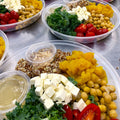 Ce bol bouddha rassemble quinoa blanc et rouge, betteraves jaunes, pois chiches, chou kale, tomates fraîches, fromage feta et amandes rôties. Le tout est sublimé par une vinaigrette maison au cidre et érable, pour une salade à la fois nourrissante et savoureuse, parfaite pour un repas équilibré et réconfortant.