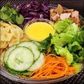 Savourez le bol bouddha méli-mélo, un repas complet composé d'ingrédients ultra frais : laitue romaine croquante, chou rouge coloré, concombres et carottes rafraîchissants, pâtes bouclettes, poulet cajun épicé, et une touche de menthe. Le tout est relevé d’une vinaigrette maison à l’ananas qui apporte douceur et fraîcheur, pour un repas équilibré et réconfortant.