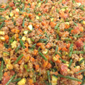 Découvrez la Fricassée du potager, un plat réconfortant alliant porc haché savoureux et riz tendre. Ce mélange est enrichi de légumes frais – carottes, haricots verts, oignons, poivrons, courgettes et céleri – soigneusement cuisinés dans une sauce tomatée douce, agrémentée d’un pesto maison. Le tout est gratiné pour une texture fondante et une saveur délicatement caramélisée, idéale pour un repas équilibré et gourmand.