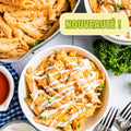 Des pennes parfaitement enrobées d’une sauce fromage buffalo crémeuse, savoureuse et bien dosée, garnies de poulet effiloché tendre et juteux.