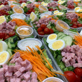 La salade repas La Chef allie laitue romaine croquante, œufs, jambon savoureux, tomates cerises juteuses, fromage cheddar doux, concombres frais et carottes croquantes. Le tout est relevé par une vinaigrette ranch onctueuse qui apporte équilibre et intensité. Ce mélange complet et gourmand offre un repas nutritif et satisfaisant, idéal pour une lunch ou en accompagnement avec un sandwich.